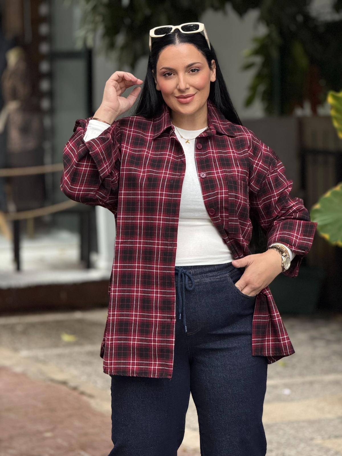 Yumuşak dokulu kumaşı ve modern kesimiyle Derayne Bordo Oduncu Gömlek