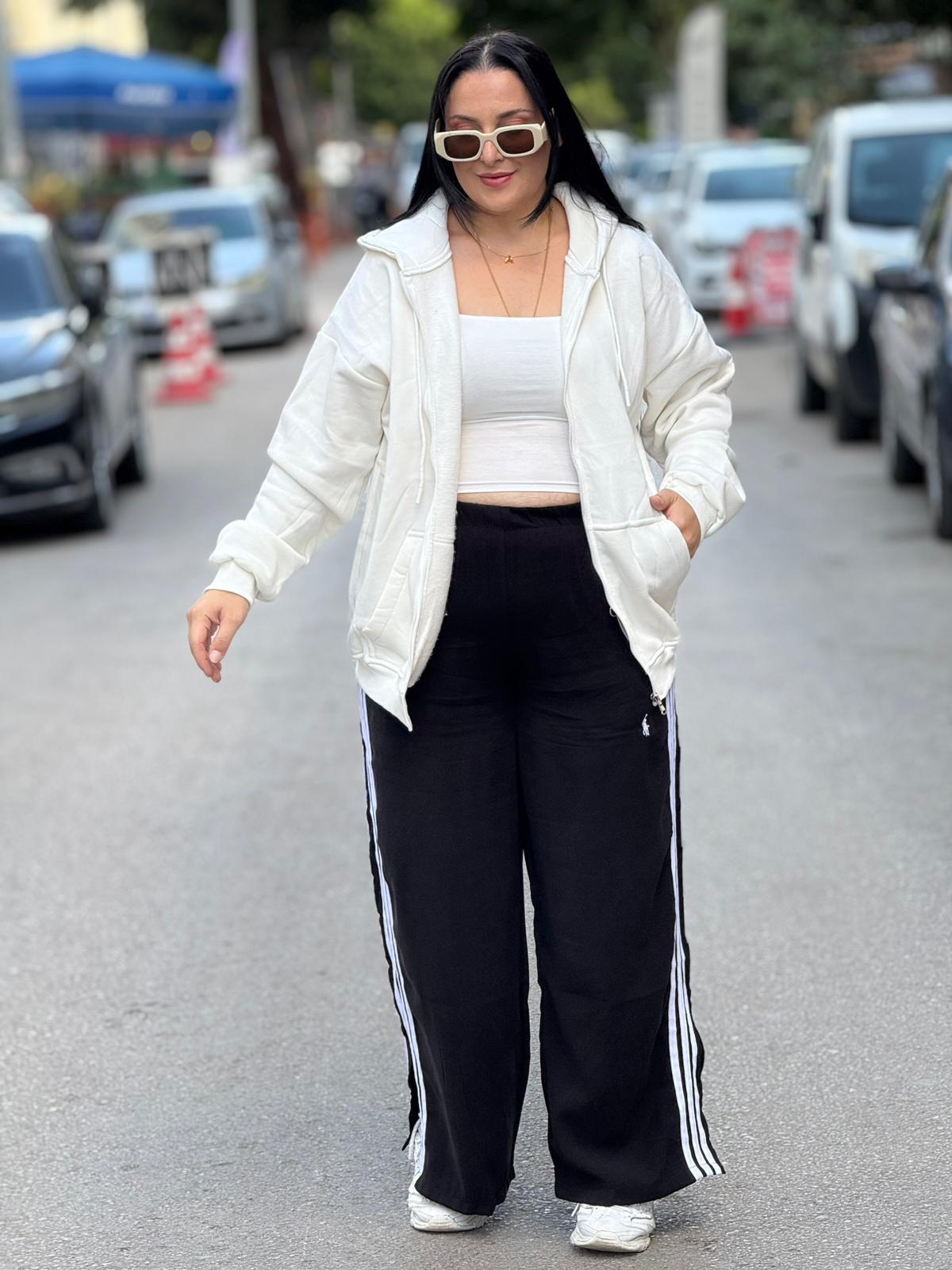 Yan kısımlarındaki çizgi detayları, sportif bir enerji katarak silueti daha uzun ve dinamik gösterir. Günlük kombinlerde sneaker’larla rahatça kullanabilir, basic bluzlarla minimal ama etkileyici bir stil yakalayabilirsin.