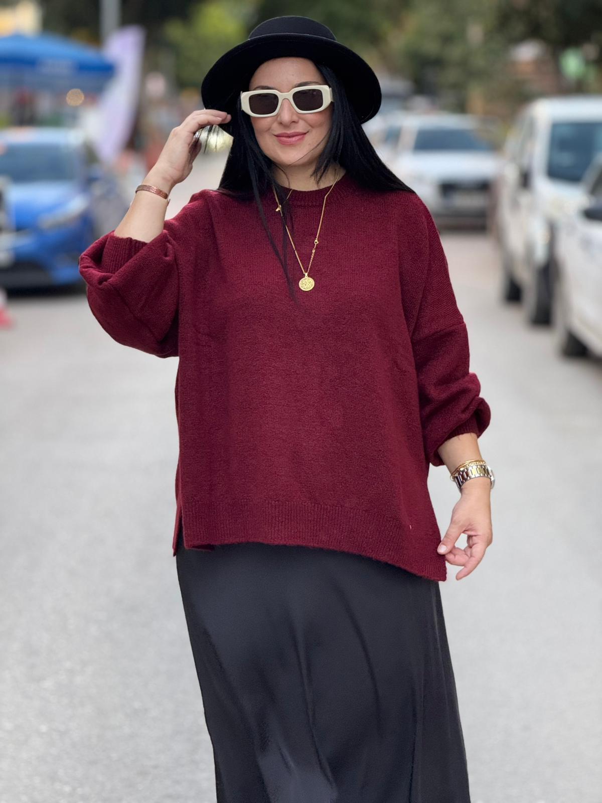 Yumuşak triko dokusu, oversize formu ve bordo tonunun sıcak enerjisiyle hem günlük hem şehirli stillerin vazgeçilmezi olur. Modern, sade ve lüks bir görünüm arayanlar için özel olarak tasarlandı.
