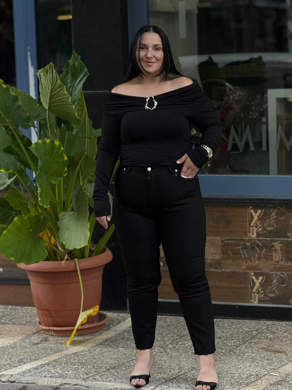 Veyona Siyah Bluz, lüks ve modern çizgilerin birleşimiyle tasarlandı. Omuzdan drapeli formu ve özel toka detayı, güçlü ve zarif bir duruş sergiliyor. Premium kumaş yapısıyla konforu ve şıklığı bir arada sunar. Hem gündüz hem de akşam kombinlerinde rahatlıkla tercih edebileceğiniz bu özel parça, stilinizi bir üst seviyeye taşır.